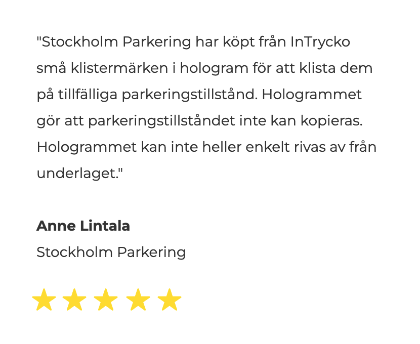 Mange af vores kunder bruger mærker til at beskytte deres parkeringstilladelser mod kopiering.